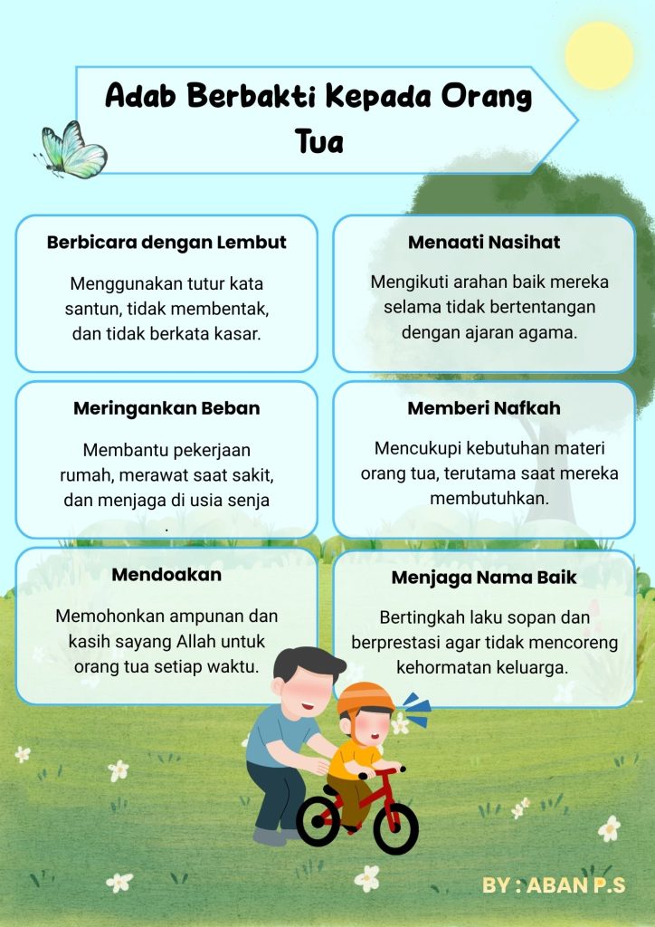 So, for this project, I created an A4 horizontal poster with the theme of “Ethics of Devotion to Parents.” So, what are the ethics of devotion to parents? The ethics of devotion to parents include: Speaking politely and gently: Avoid saying “ah,” avoid shouting, and avoid raising your voice when speaking to them.